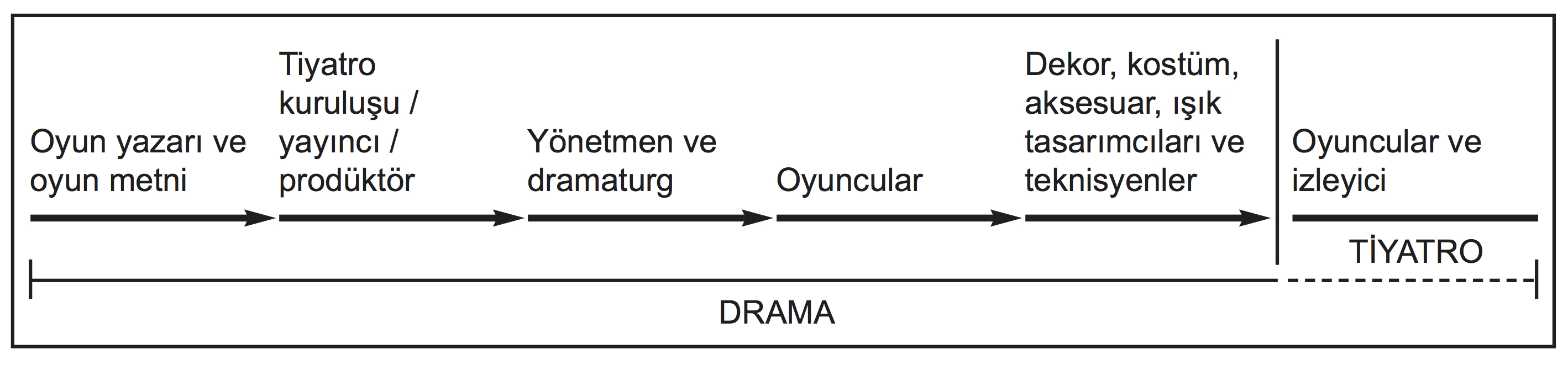 Tartışmaların çekirdeğini “drama” sözcüğünün kapsamı oluşturur: Bazılarına göre drama, sahnelenmek üzere yazılan bir metinle başlayıp bu metnin izleyici önünde sahnelenişinin son saniyesine kadar olan sürecin bütünüdür. Yani, tiyatroyu dramatik sürecin (dramatic process) bir parçası olarak görürler. Bazılarıysa oyun başladığında, yani oyuncuyla izleyici başbaşa kaldığı anda dramanın bittiğini, tiyatronun başladığını savunur. (Elam, 2-3)